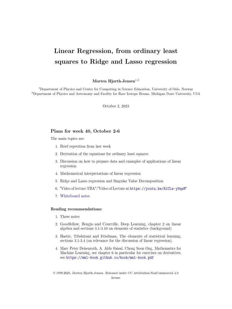 2. Goodfellow, Bengio and Courville, Deep Learning, chapter 2 on linear