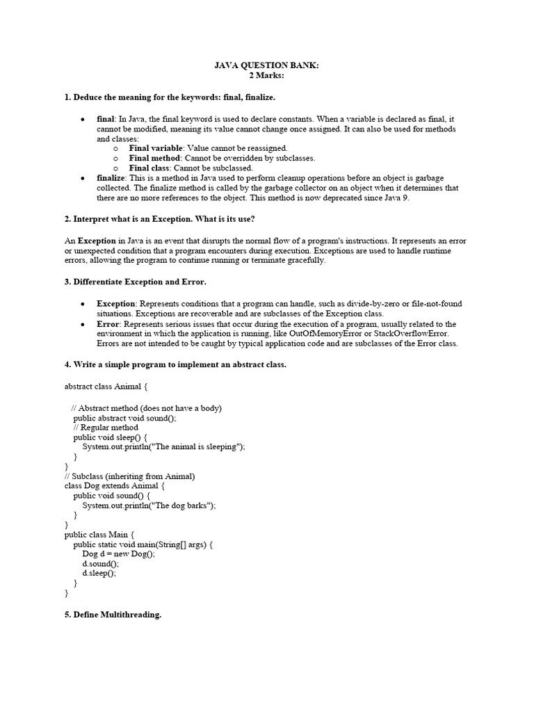 • final: In Java, the final keyword is used to declare constants. When a variable is declared as final, it