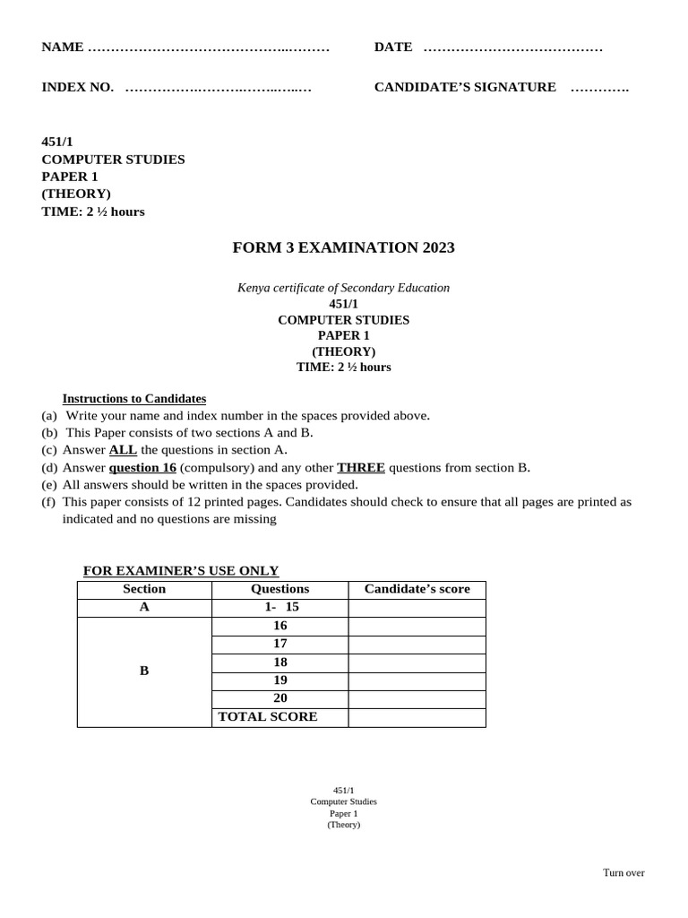 FORM 3 EXAMINATION 2023