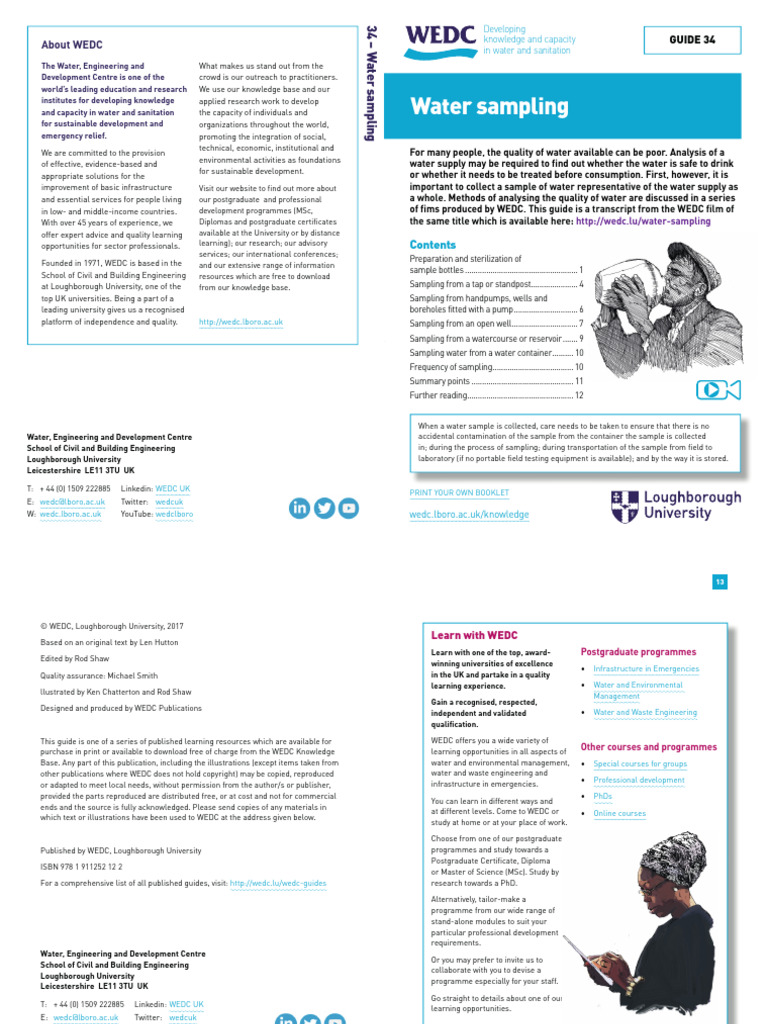 With over 45 years of experience, we Diplomas and postgraduate certificates the same title which is available here: http://wedc.lu/water-sampling