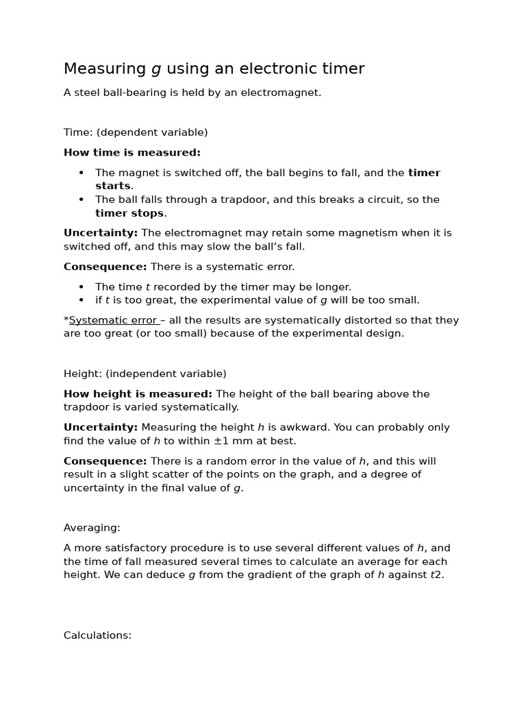 Systematic error: This is not a very satisfactory method of measuring g.