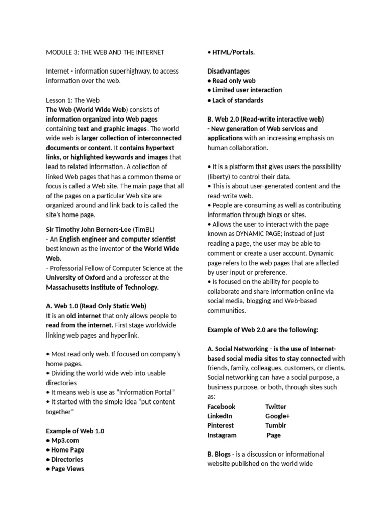 MODULE 3: THE WEB AND THE INTERNET • HTML/Portals.