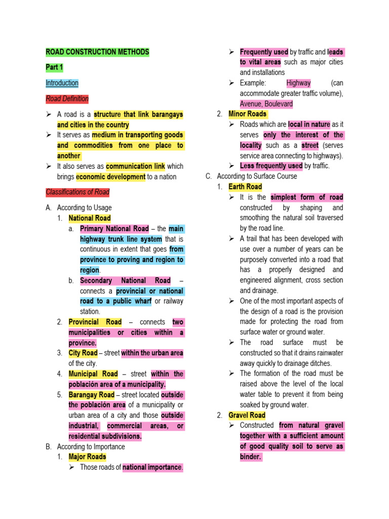 ROAD CONSTRUCTION METHODS ➢ Frequently used by traffic and leads