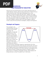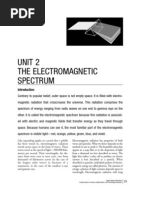Whether taking the form of a signal transmitted to a radio from the broadcast station, heat radiating from a fireplace, the dentist's X-rays producing images of teeth, or the visible and ultraviolet light emanating from the sun, the various categories of electromagnetic radiation all share identical and fundamental wave-like properties. Every category of electromagnetic radiation, including visible light, oscillates in a periodic fashion with peaks and valleys (or troughs), and displays a characteristic amplitude, wavelength, and frequency that together define the direction, energy, and intensity of the radiation. The classical schematic diagram of an electromagnetic wave presented in Figure 1 illustrates the sinusoidal nature of oscillating electric and magnetic component vectors as they propagate through space. As a matter of convenience, most illustrations depicting electromagnetic radiation purposely omit the magnetic component, instead representing only the electric field vector as a sine wave in a two-dimensional graphical plot having defined x and y coordinates. By convention, the y component of the sine wave indicates the amplitude of the electric (or magnetic field), while the x component represents time, the distance traveled, or the phase relationship with another sine wave. A standard measure of all electromagnetic radiation is the magnitude of the wavelength (in a vacuum), which is usually stated in units of nanometers (one-thousandth of a micrometer) for the visible light portion of the spectrum. The wavelength is defined as the distance between two successive peaks (or valleys) of the waveform (see Figure 1). The corresponding frequency of the radiated wave, which is the number of sinusoidal cycles (oscillations or complete wavelengths) that pass a given point per second, is proportional to the reciprocal of the wavelength. Thus, longer wavelengths correspond to lower frequency radiation and shorter wavelengths correspond to higher frequency radiation. Frequency is usually expressed in quantities of hertz (Hz) or cycles per second (cps).