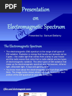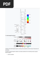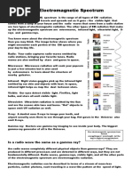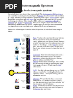 Radio waves, visible light, X-rays, and all the other parts of the electromagnetic spectrum are fundamentally the same thing, electromagnetic radiation. Electromagnetic radiation can be described in terms of a stream of photons, which are massless particles each traveling in a wave-like pattern and moving at the speed of light. Each photon contains a certain amount (or bundle) of energy, and all electromagnetic radiation consists of these photons. The only difference between the various types of electromagnetic radiation is the amount of energy found in the photons. Radio waves have photons with low energies, microwaves have a little more energy than radio waves, infrared has still more, then visible, ultraviolet, X-rays, and ... the most energetic of all ... gamma-rays. Actually, the electromagnetic spectrum can be expressed in terms of energy, wavelength, or frequency. Each way of thinking about the EM spectrum is related to the others in a precise mathematical way. So why do we have three ways of describing things, each with a different set of physical units? After all, frequency is measured in cycles per second (which is called a Hertz), wavelength is measured in meters, and energy is measured in electron volts.