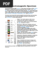 Microwaves: They will cook your popcorn in just a few minutes! Microwaves in space are used by astronomers to learn about the structure of nearby galaxies, and our own Milky Way! Infrared: Our skin emits infrared light, which is why we can be seen in the dark by someone using night vision goggles. In space, IR light maps the dust between stars. Visible: Yes, this is the part that our eyes see. Visible radiation is emitted by everything from fireflies to light bulbs to stars ... also by fast-moving particles hitting other particles. Ultraviolet: We know that the Sun is a source of ultraviolet (or UV) radiation, because it is the UV rays that cause our skin to burn! Stars and other "hot" objects in space emit UV radiation. X-rays: Your doctor uses them to look at your bones and your dentist to look at your teeth. Hot gases in the Universe also emit X-rays .