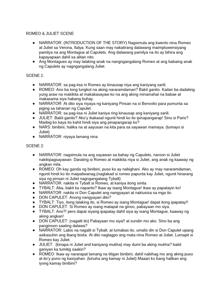 ● JULIET: oh, Romeo, wag mong isipin ang ating pangalan, dahil ikaw ay aking iniibig.