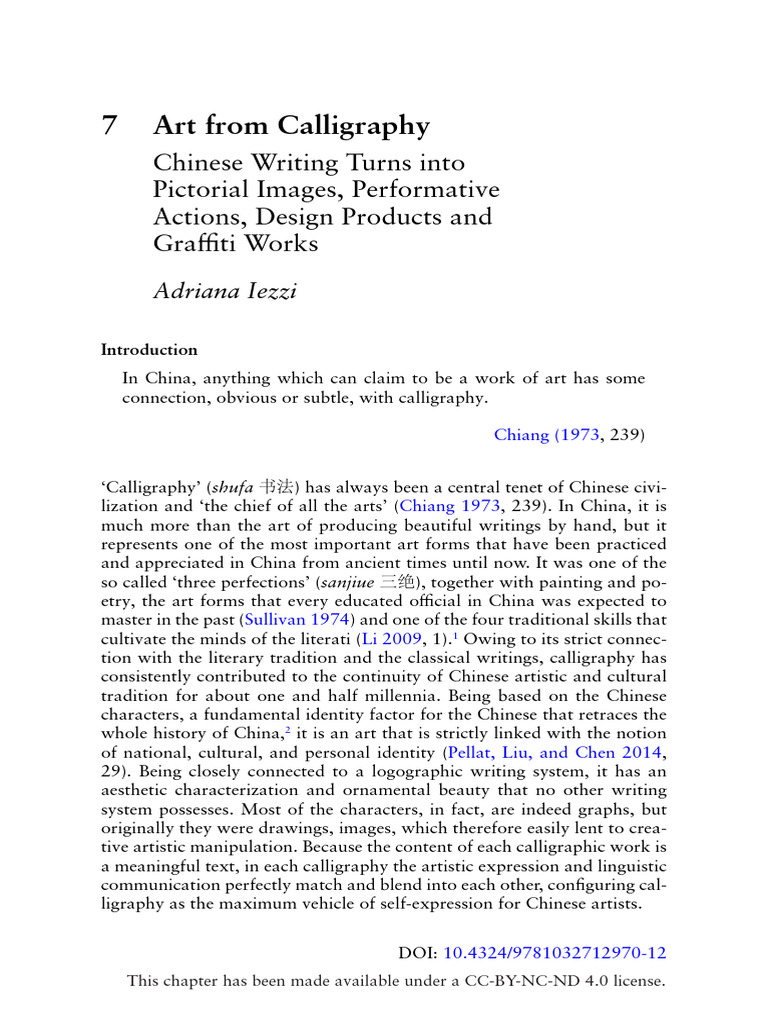 lization and ‘the chief of all the arts’ (Chiang 1973, 239). In China, it is