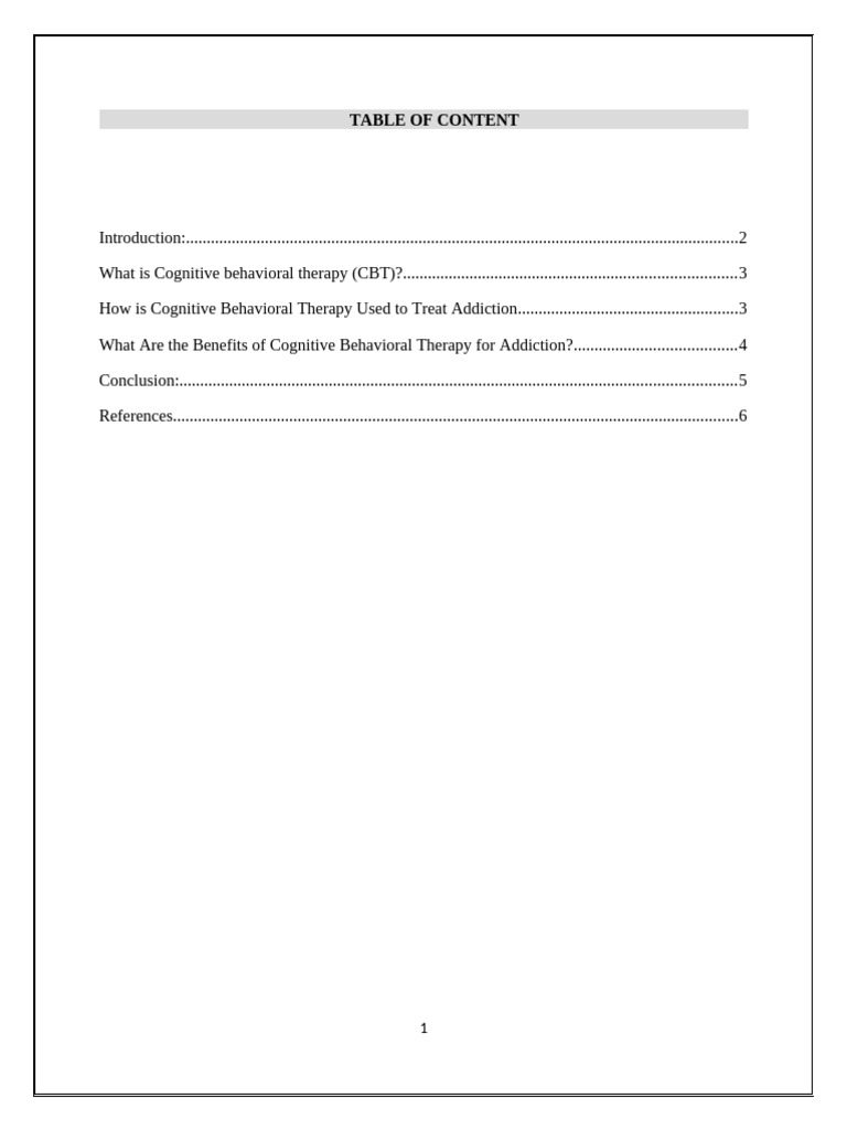 How is Cognitive Behavioral Therapy Used to Treat Addiction.....................................................3