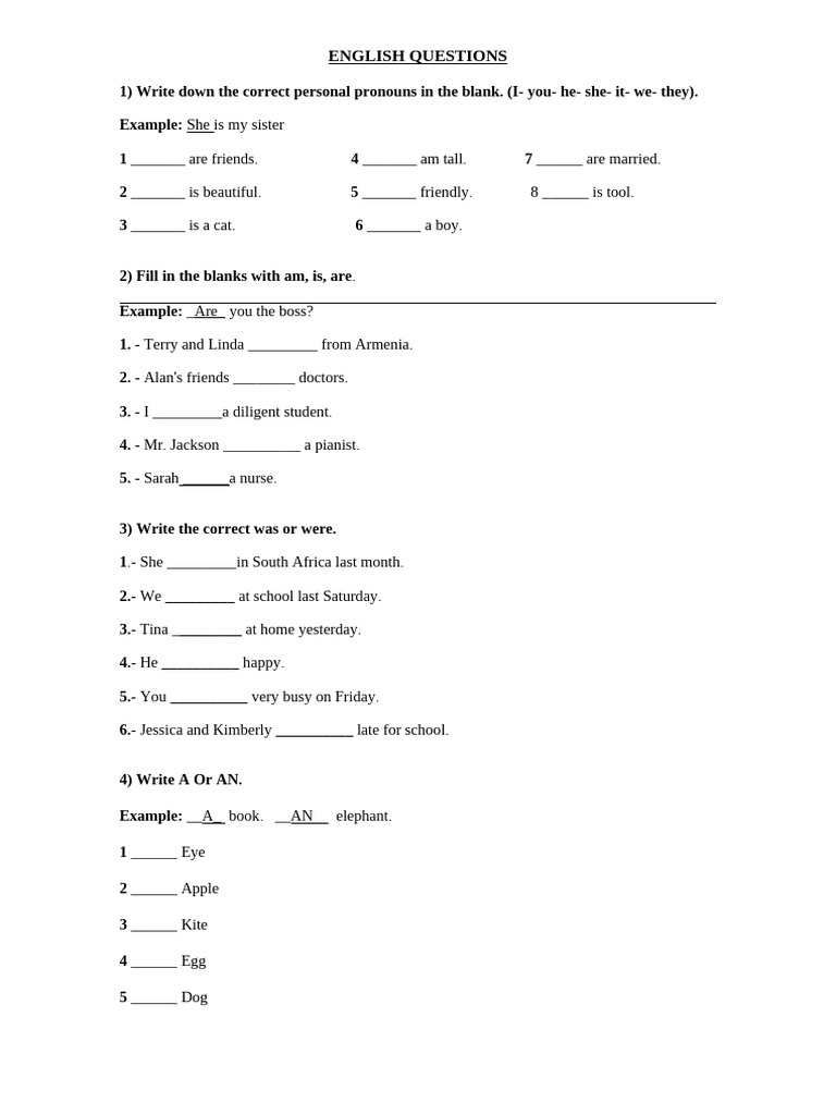 2) Fill in the blanks with am, is, are. _____________________________