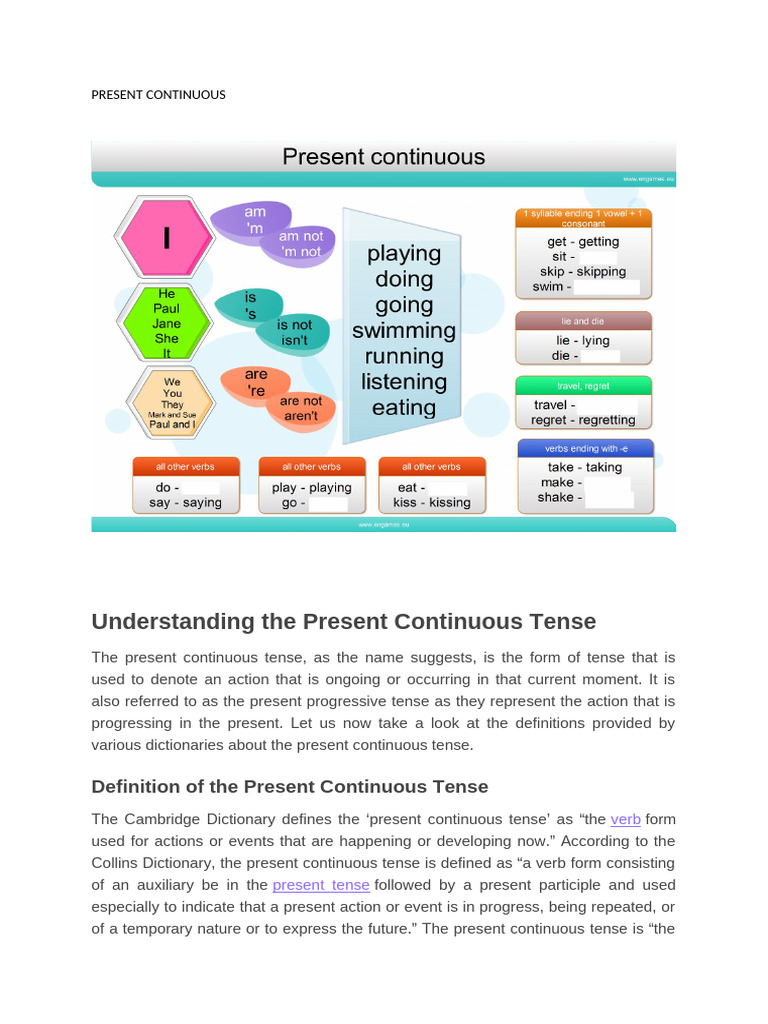 Collins Dictionary, the present continuous tense is defined as “a verb form consisting