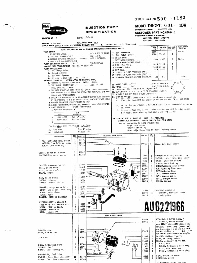 FOR 10 MINUTES TO BRING TO OPERATING TEMPERATURE AND 22. GOVERNOR CONTROL COVER TO BE STAMPED 12 VOLTS OUT
