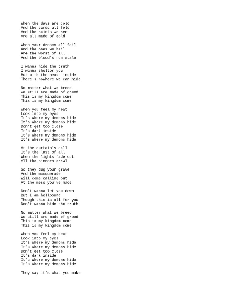 It's where my demons hide
