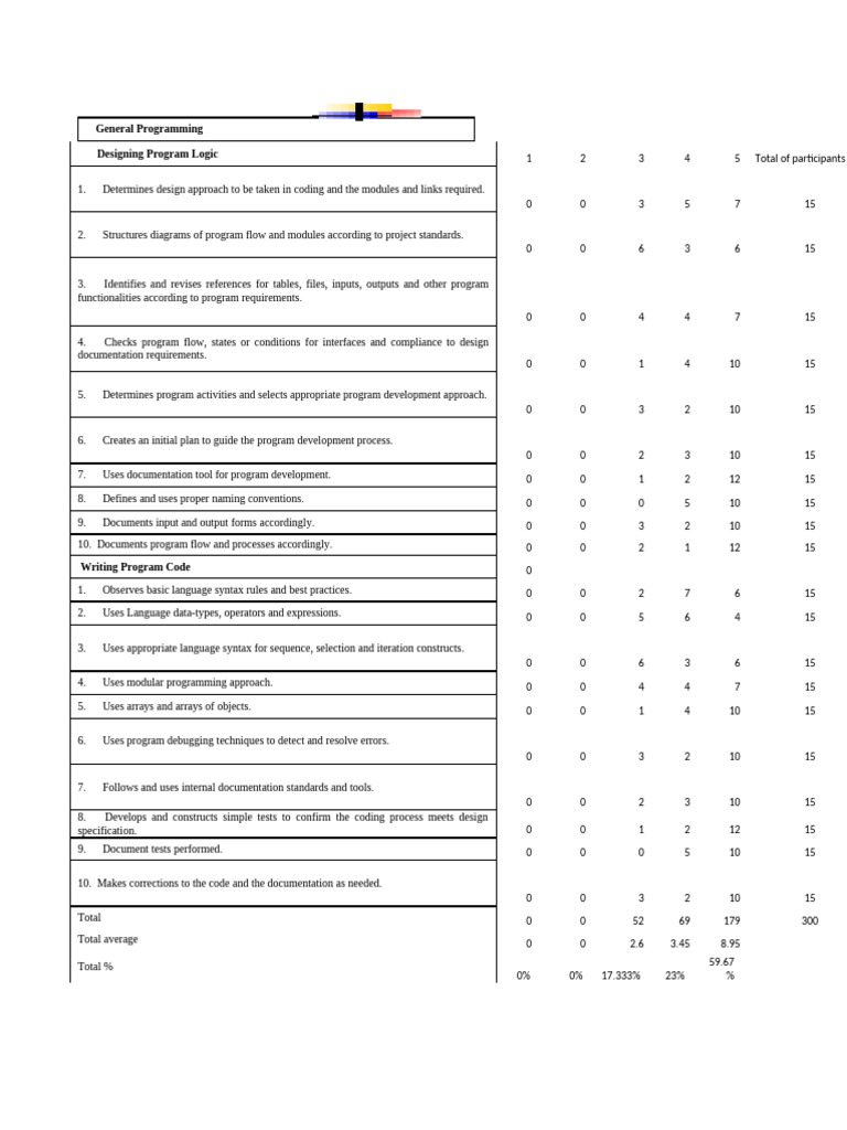 Designing Program Logic 1 2 3 4 5 Total of participants