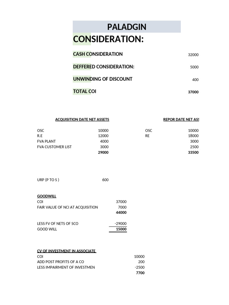 CASH CONSIDERATION 32000