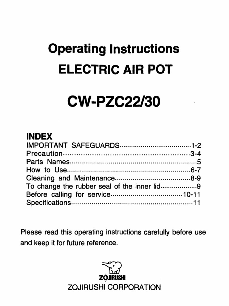e 11 the supply cord of the appliance is damaged, contact your local Zojirushi dealer or the nearest