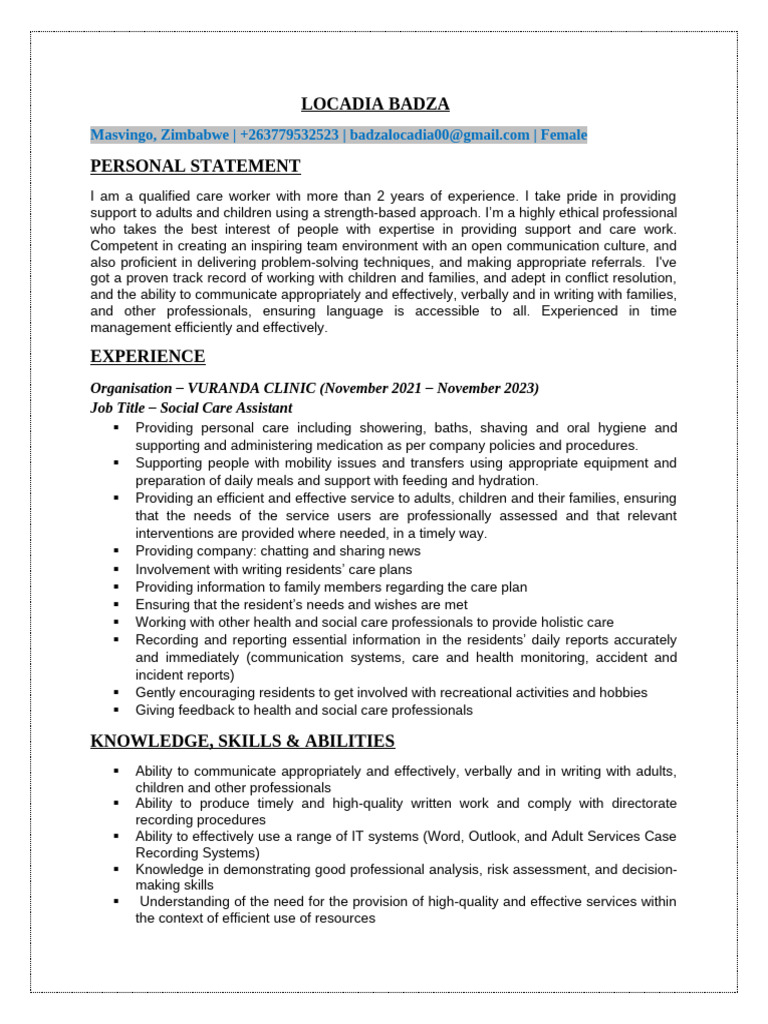 Masvingo, Zimbabwe | +263779532523 | badzalocadia00@gmail.com | Female