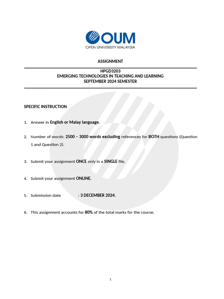 6. This assignment accounts for 80% of the total marks for the course.