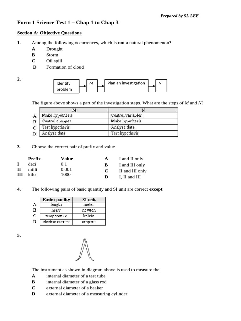 Form 1 Science Test 1 – Chap 1 to Chap 3