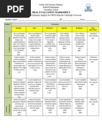 Oral Evaluation Marksheet: Category Performance Excellent Good Satisfactory Sufficient Insufficient Needs Improvement