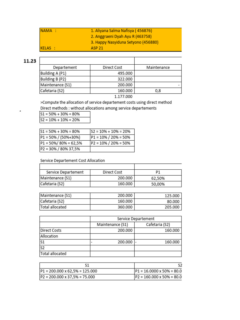 Service Departement Direct Cost P1