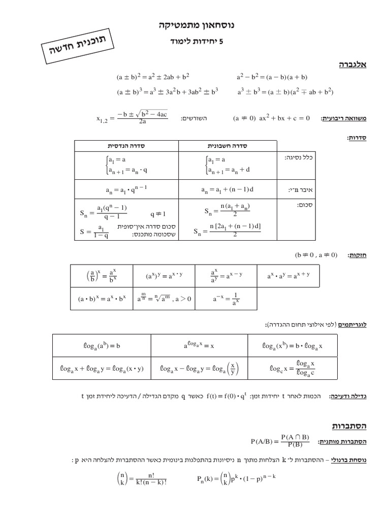 נוסחאון מתמטיקה 5 ,יחידות לימוד – תוכנית חדשה -2-
