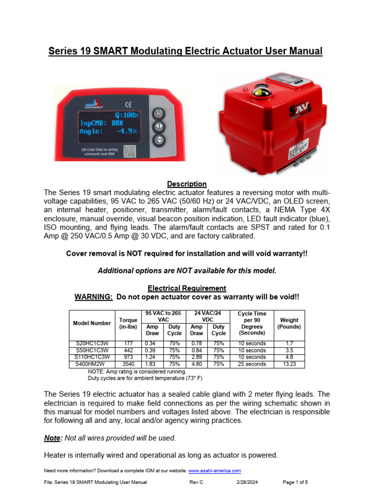 File: Series 19 SMART Modulating User Manual Rev C 2/28/2024 Page 1 of 5