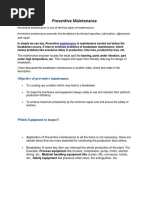 • What is Preventive Maintenance? Give examples.