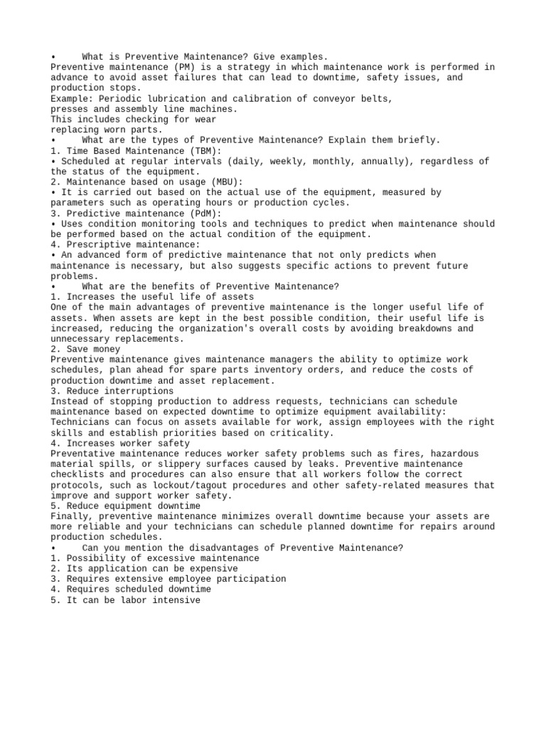 • Can you mention the disadvantages of Preventive Maintenance?