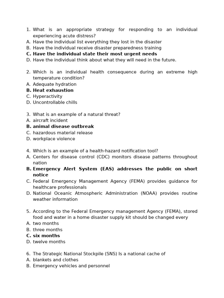 5. According to the Federal Emergency management Agency (FEMA), stored