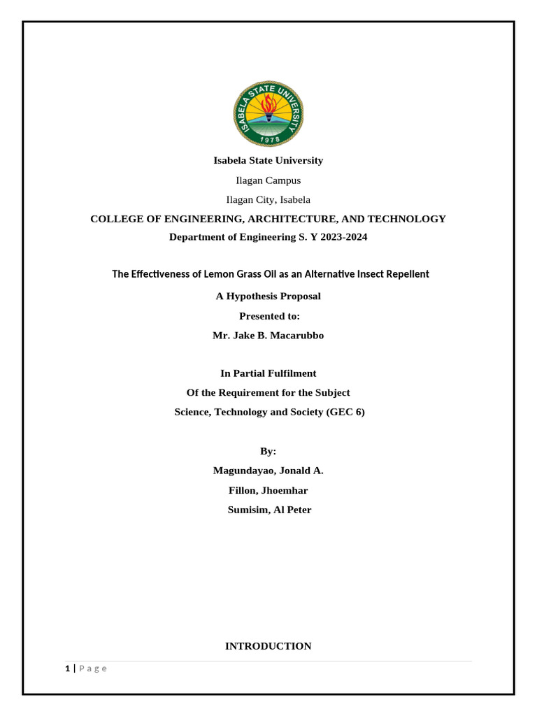whether the use of lemon grass oil as a repellent is effective. Our goal is to create an effective