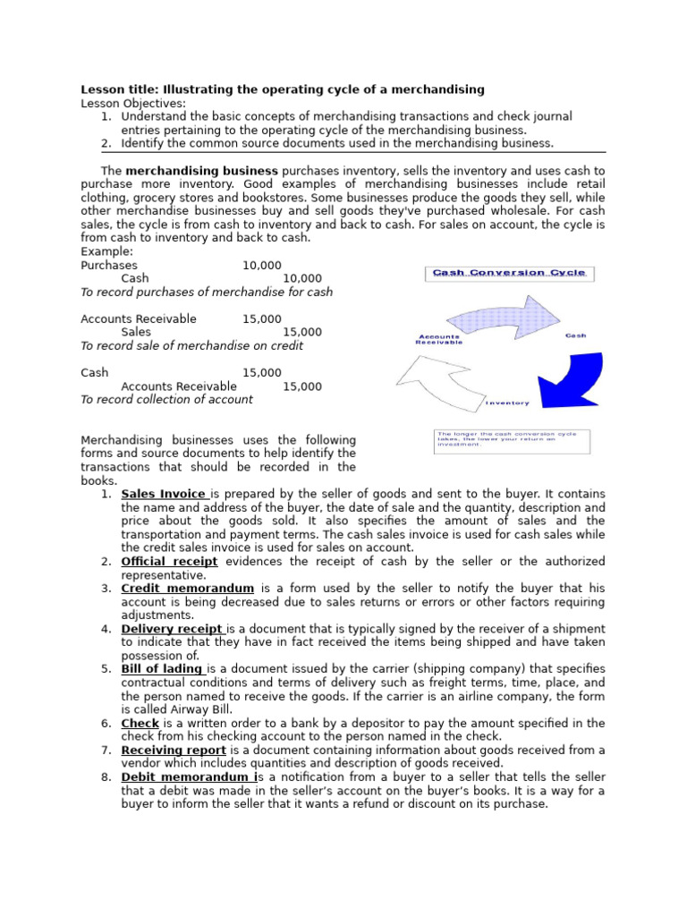 Lesson title: Illustrating the operating cycle of a merchandising