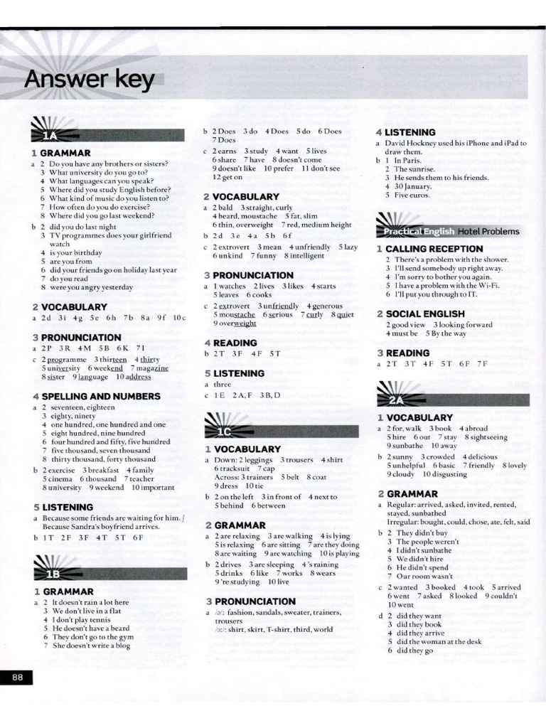 English File Workbook answer key pre-intermediate