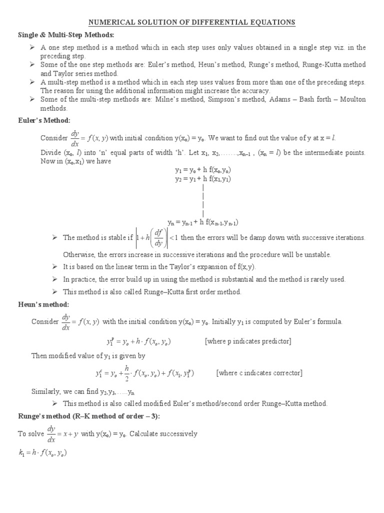 • Numerical Solution of Differential Equations: Introduces methods for numerically solving differential equations including single and multi-step processes.