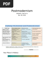 Modernism ranged from the 1890s to the 1940s, but postmodernism came to form in the mid-