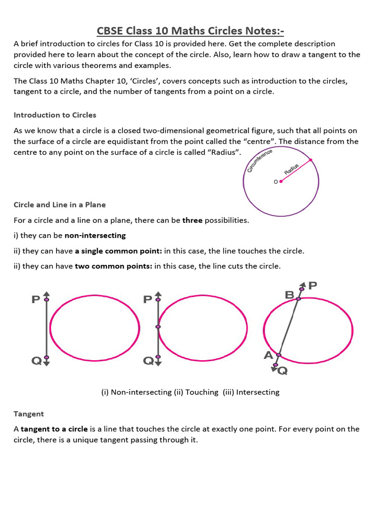 A brief introduction to circles for Class 10 is provided here. Get the complete description
