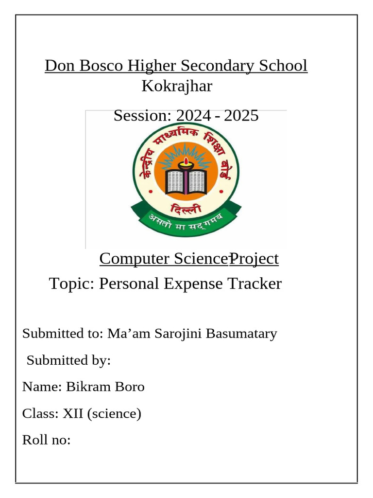 Topic: Personal Expense Tracker