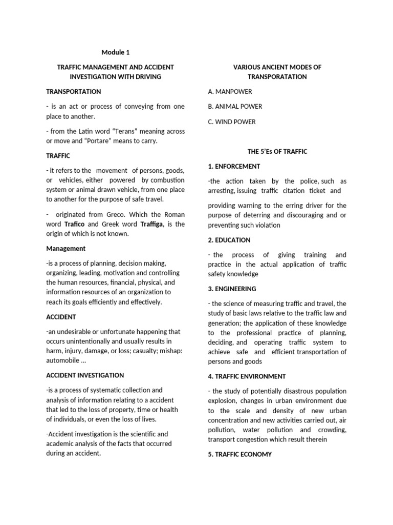 1. Human factors - ex. driver behavior, visual ● one form of trace evidence, when their size