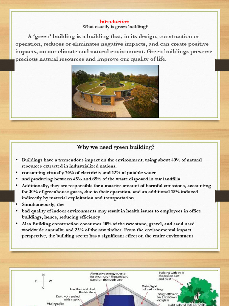 • Buildings have a tremendous impact on the environment, using about 40% of natural