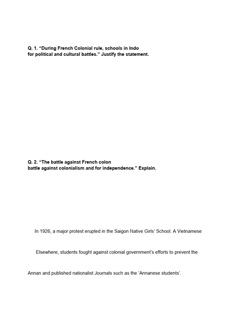 Q. 1. “During French Colonial rule, schools in Indo-China became important place