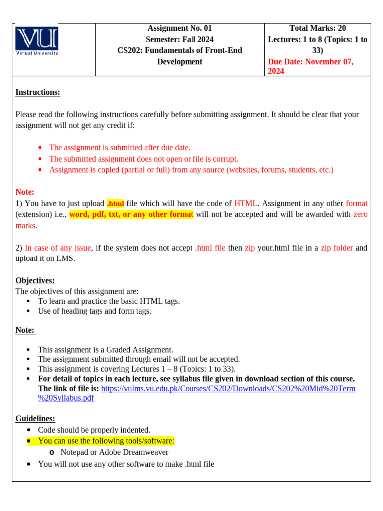 1) You have to just upload .html file which will have the code of HTML. Assignment in any other format