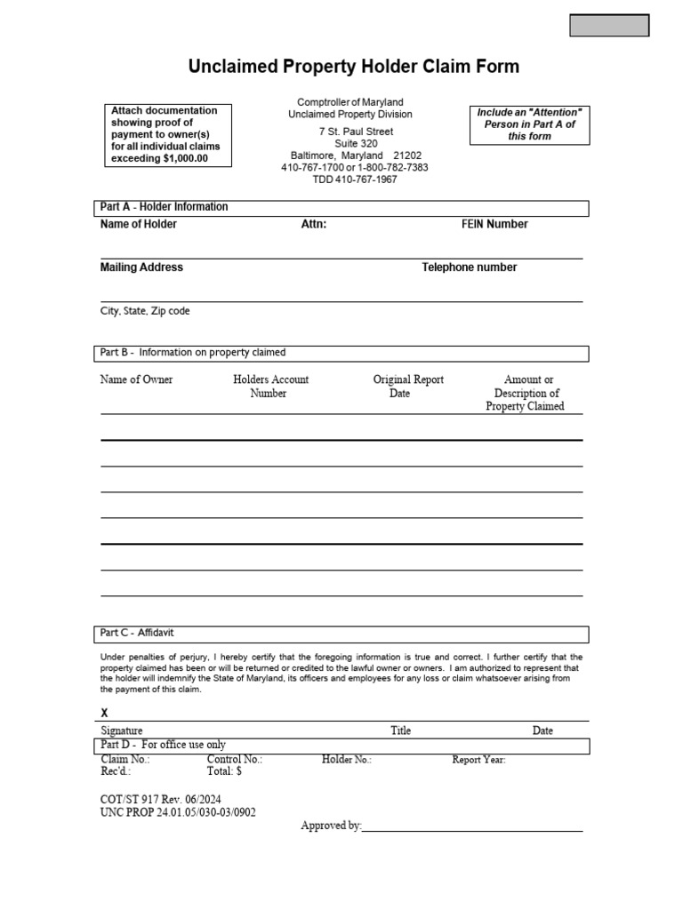 Attach documentation Unclaimed Property Division Include an "Attention"