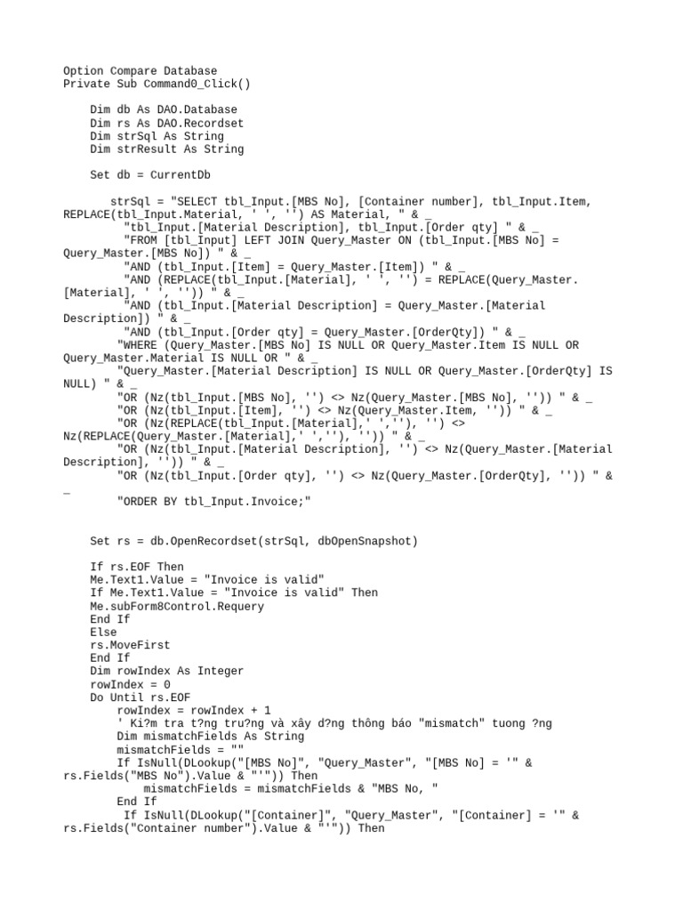 If Me.Text1.Value = "Invoice need to be checked.Mismatch fields: " &