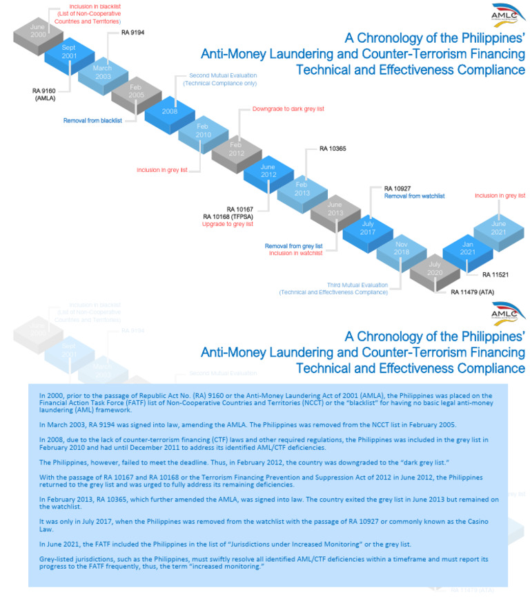 of Republic Act No. (RA) 9160 or the Anti-Money Laundering Act of 2001 (AMLA), the Philippines was placed on the