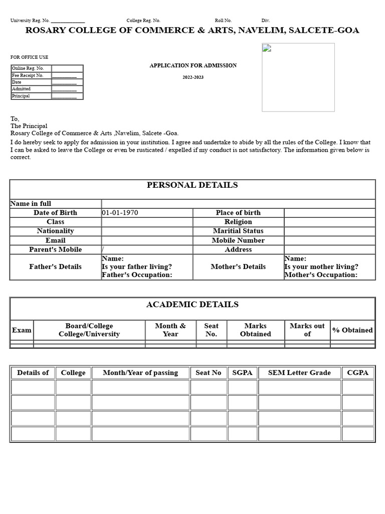 ROSARY COLLEGE OF COMMERCE & ARTS, NAVELIM, SALCETE-GOA