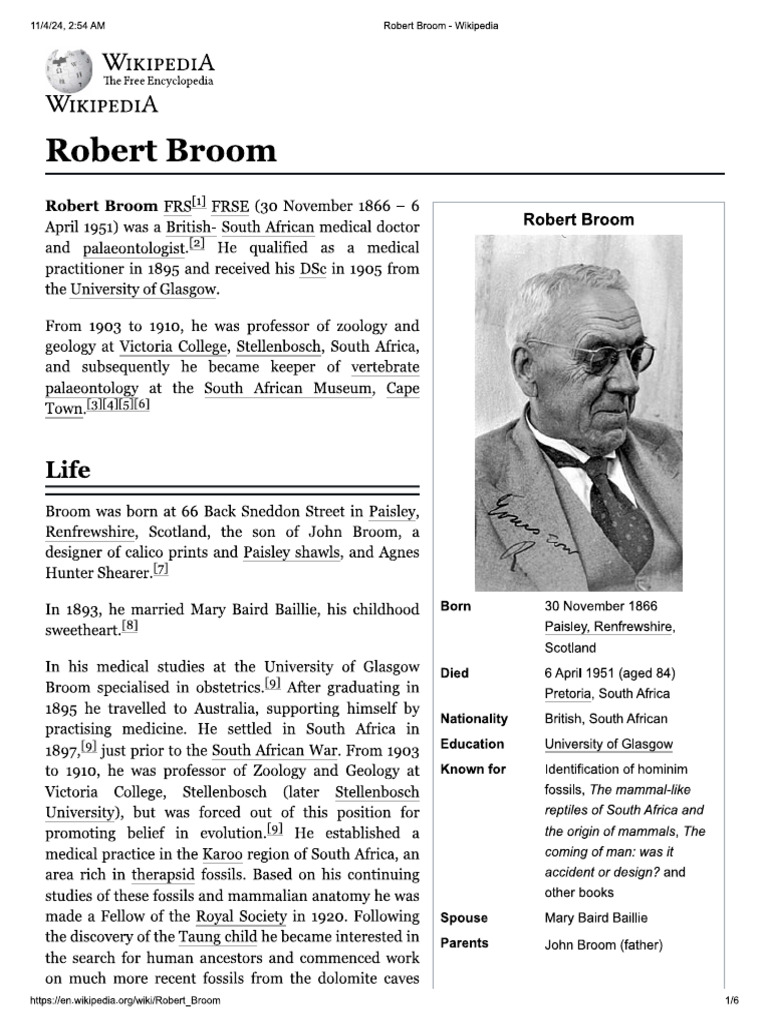 hips ven sikipedta.orgwikiRobert_Broom 516‘128, 284 AM Robert Broom - Wikipedia