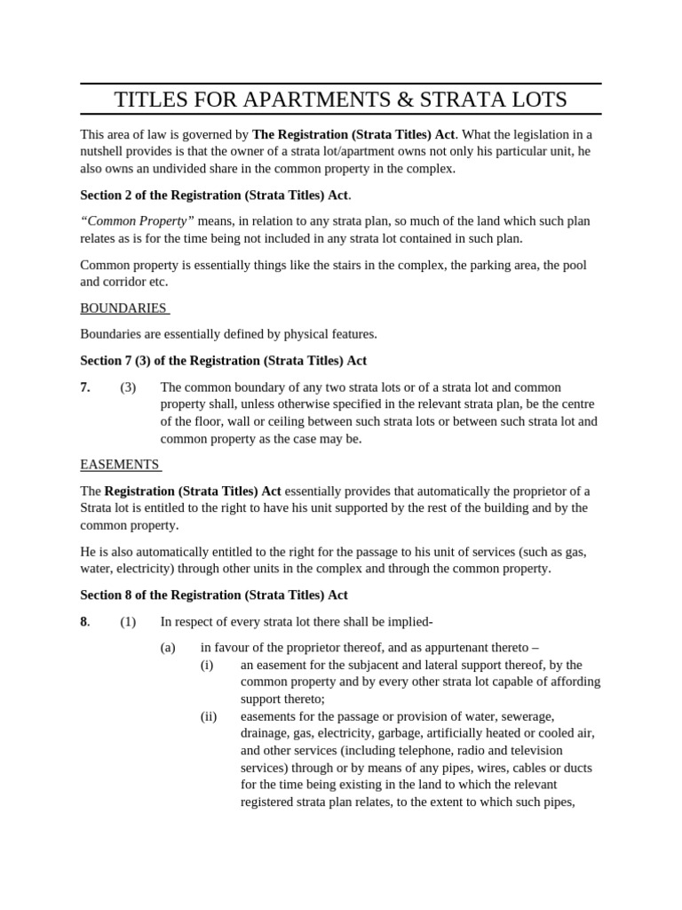 This area of law is governed by The Registration (Strata Titles) Act. What the legislation in a