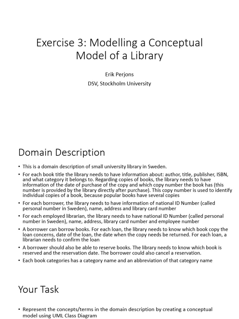 • This is a domain description of small university library in Sweden.