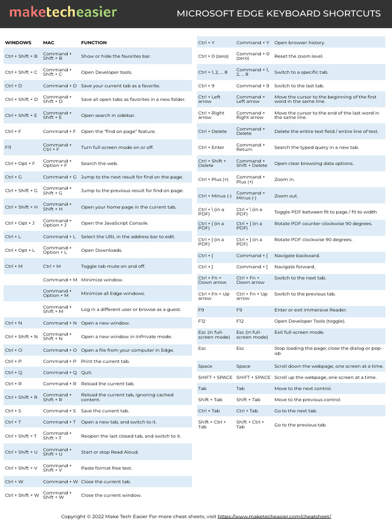 Copyright © 2022 Make Tech Easier For more cheat sheets, visit https://www.maketecheasier.com/cheatsheet/