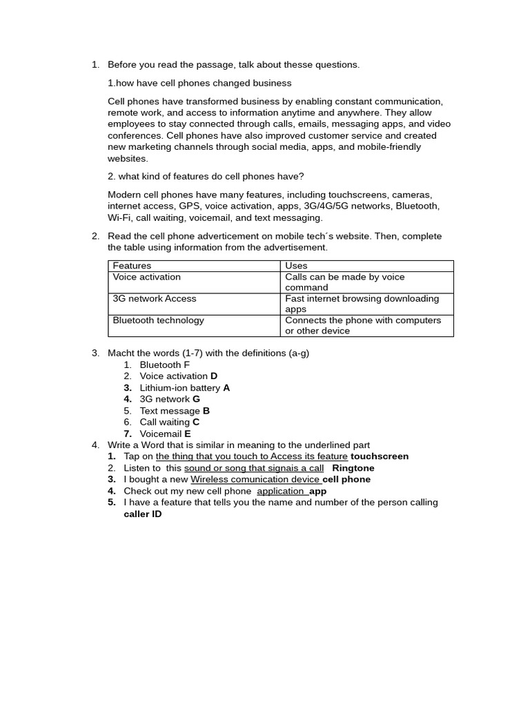 2. Read the cell phone adverticement on mobile tech´s website. Then, complete